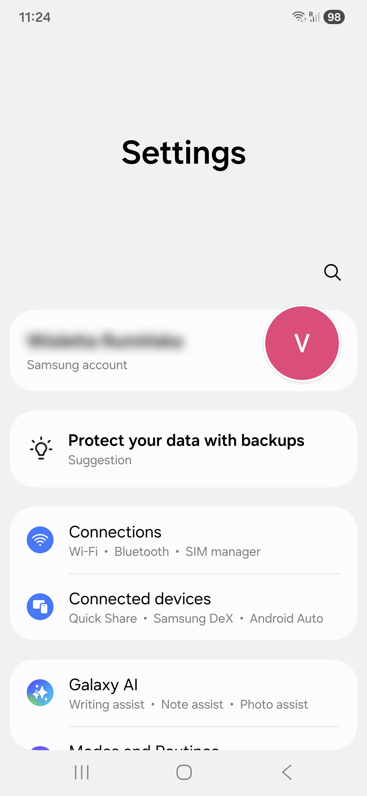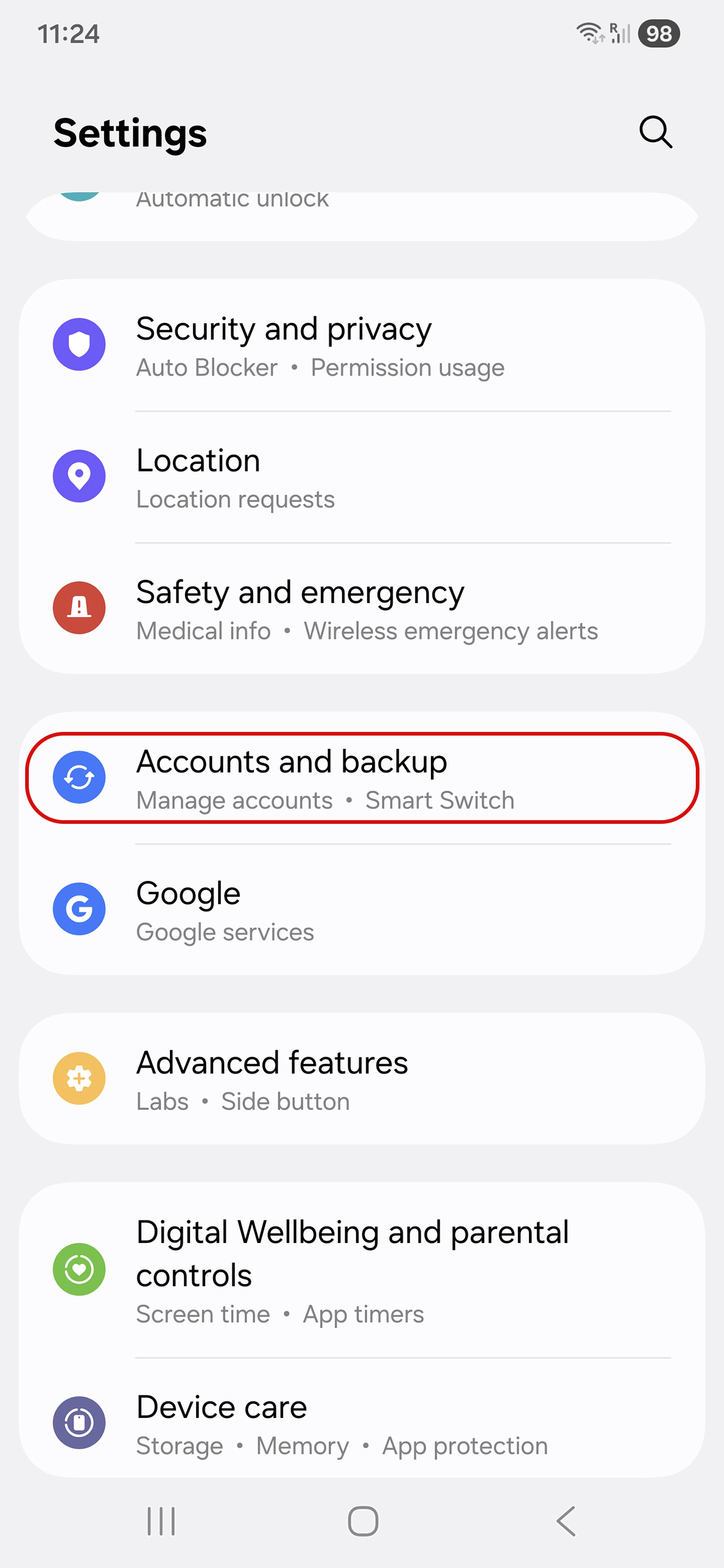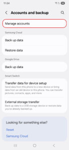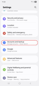 2. Go to Accounts and backup.