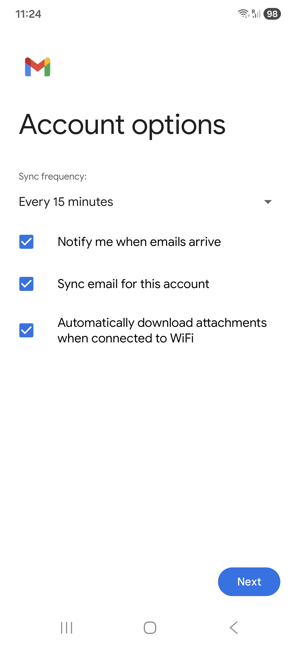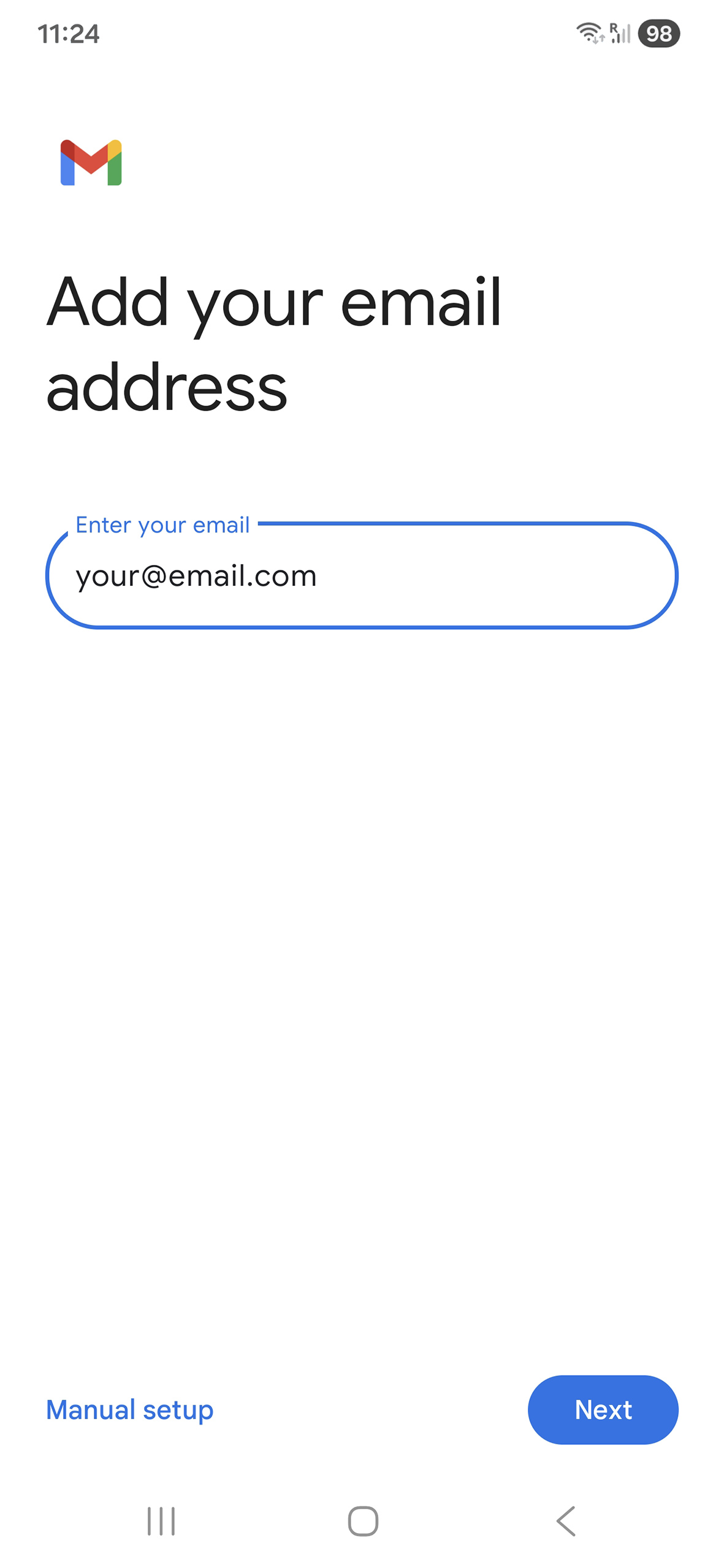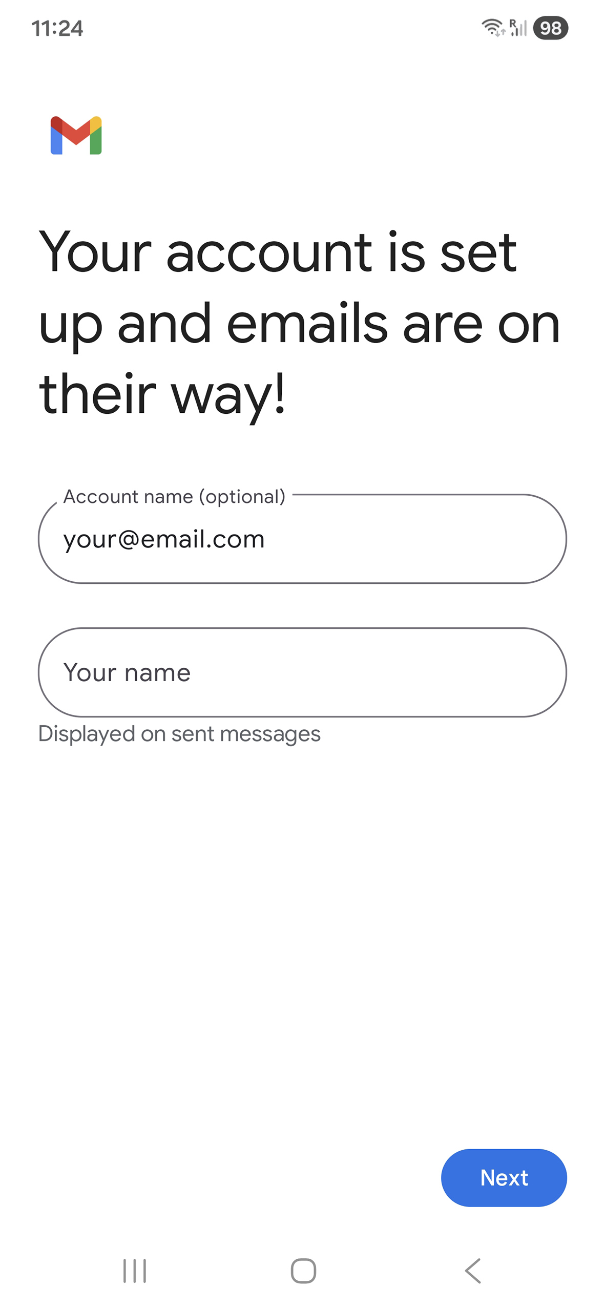 Mobile device configuration - Add email account to your Samsung – Android 16 – Gmail APP