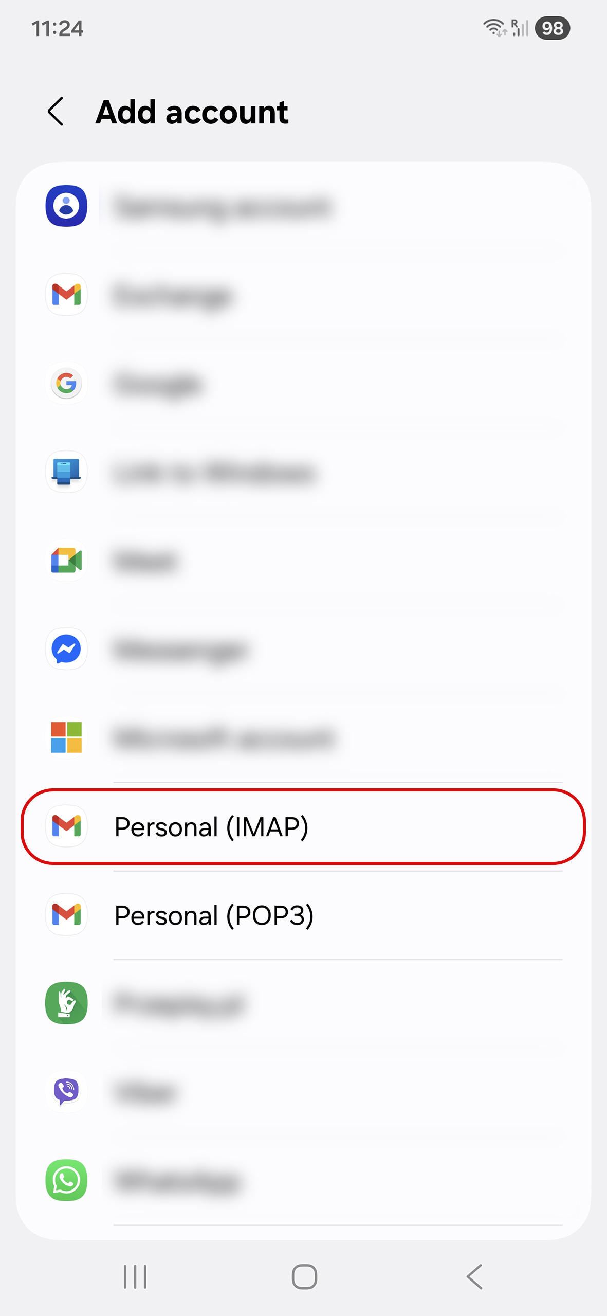 5. Select Personal (IMAP) for account type.