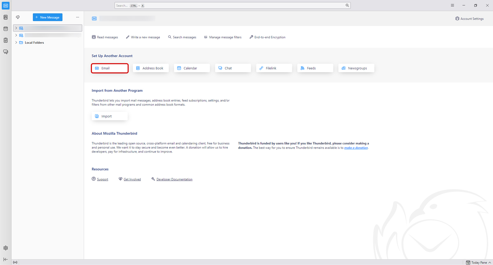 1. Click “Email” in the “Set Up Another Account” section.
